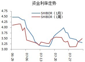 (2)7月24日公布3个月国库现金定存利率为3.5%,较上月上行27BP。