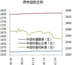 国债和信用债指数微涨,大盘低迷的背景下,转债指数震荡下行。