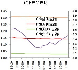 广发货币8月基金七日年化收益率的月度平均值为3.38%。