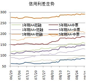 信用利差随基础利率的上涨而上涨,长期信用债的利差反弹幅度并不低1年期品种低,整体利差水平已经回调到至少历史中位数的水平。