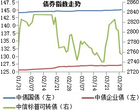 国债指数、企业债指数走势平稳;可转债指数波动较大,3月收益率微降。