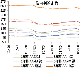 (2) 3月下旬公布的汇丰PMI数据达到51.7,强于预期,高等级信用债收益率继续上行;