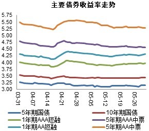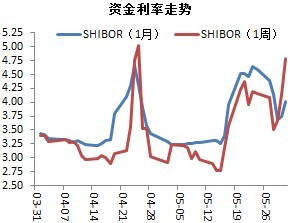 央票集中到期,公开市场操作仍延续净投放状态(1600亿元),但受到外汇占款下降以及财税上缴的影响,资金面在5月中旬开始维持在高位。