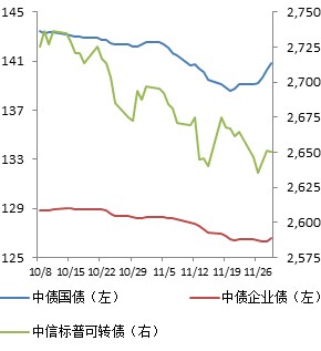 国债与企业债指数走平;可转债指数震荡下行,月末略有回升。