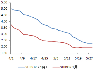 (1)5月份,央行公开市场无任何操作,同时无任何到期;