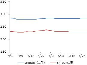 (2)5月16日,为保持银行体系流动性合理充裕,结合金融机构流动性需求,人民银行对金融机构开展中期借贷便利(MLF)操作共2900亿元,其中期限3个月1750亿元,6个月1150亿元,利率继续与上期持平,分别为2.75%、2.85%。