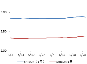 (2)央行6月7日开展2080亿元规模MLF操作 利率与上期持平。其中3个月1232亿元、6个月115亿元、1年期733亿元,利率与上期持平,分别为2.75%、2.85%、3.0%。