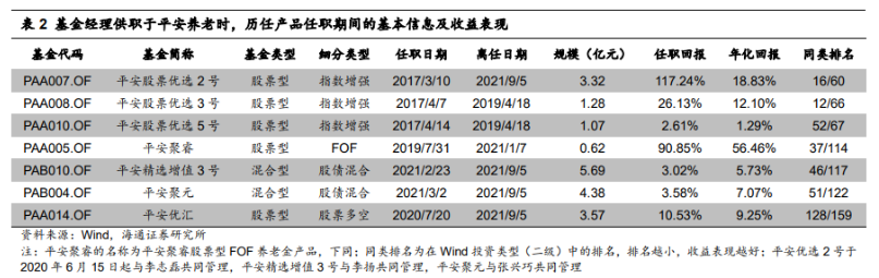从上面这张表,我们可以看到,曹建文在平安养老管理的产品中,有两只指数增强基金的年化收益超过12%,绝对收益产品——平安优汇的年化收益接近10%,而股票型FOF——平安聚睿的年化收益更是接近60%。