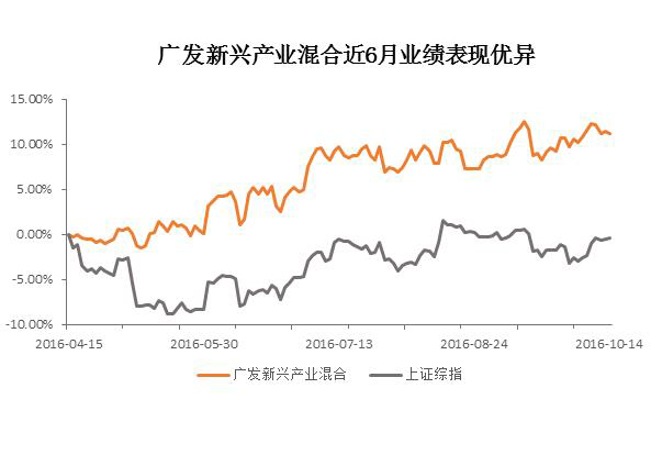 自成立以来,广发新兴产业混合一直表现稳健,截至2016年11月2日,广发新兴产业混合近6月收益率13.57%,大幅跑赢同期上证综指(5.60%),超额收益明显。