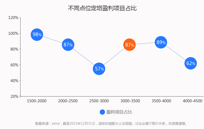 从历史数据来看,低位参与定增,盈利概率更高。目前上证指数3000点左右,整体估值趋于合理。此点位买定增,有87%的概率获得正收益。一旦市场反弹,投资收益将进一步放大。