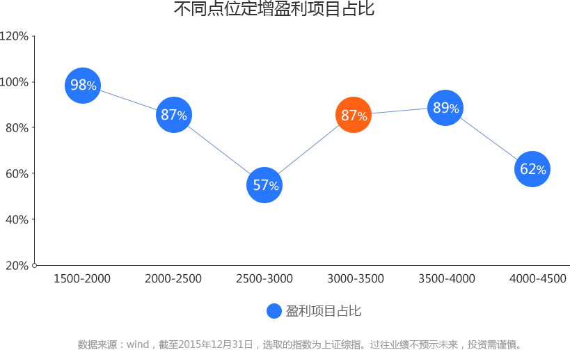 从历史数据来看,低位参与定增,盈利概率更高。目前上证指数3000点左右,整体估值趋于合理。此点位买定增,有87%的概率获得正收益。一旦市场反弹,投资收益将进一步放大。