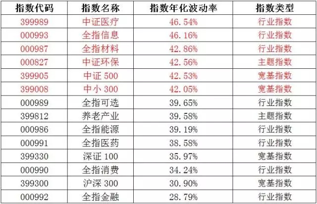 (一)选今年年化波动率较大的指数。