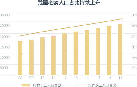 中国人口老龄化日益加剧,预计到21世纪中叶,老龄人口占比将达到35%,即每3个人中就有一个老年人,养老压力加大。