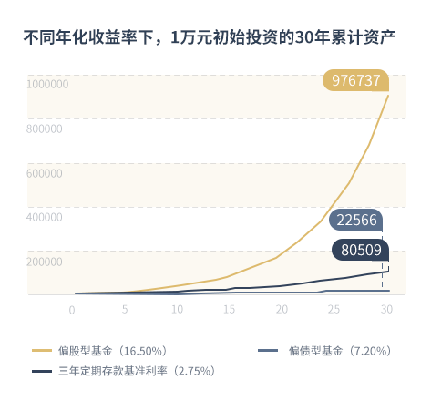 养老投资追求资产的长期稳健增值,公募基金在产品设计、投资管理上具备丰富经验,能帮助客户形成长期投资理念,充分享受时间复利的效果,从而实现养老投资的收益目标。