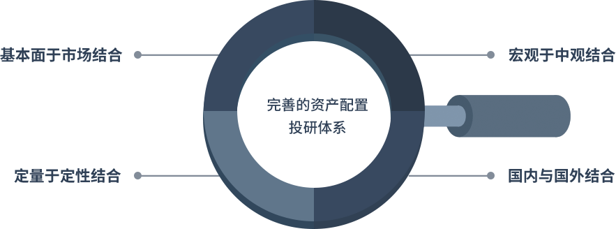 采用定量方法和定性研究相结合的核心卫星策略来实现不同资产的配置,通过经典配置理论框定组合的收益和风险。