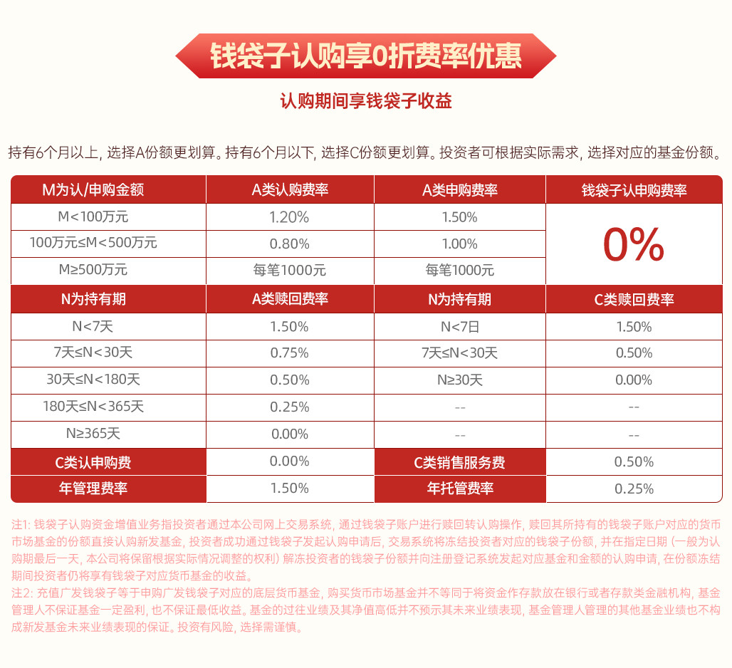 钱袋子认购享0折费率优惠,认购期间享钱袋子收益
