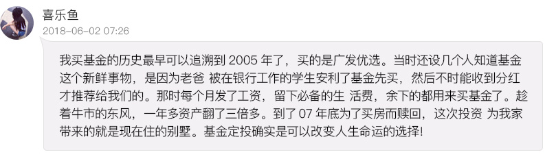 2005年1月,广发基金跟工行合作开办定投业务,并于07年成为国内首个拥有百万定投客户的基金管理公司。
