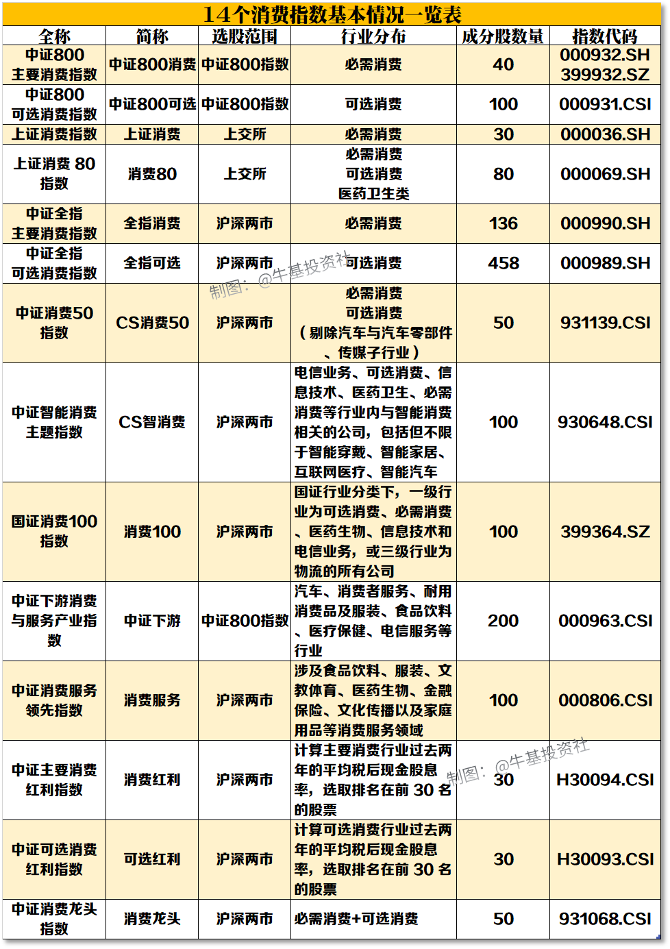 ◾只在必需消费中挑选个股的指数:中证800消费、上证消费、全指消费、消费红利