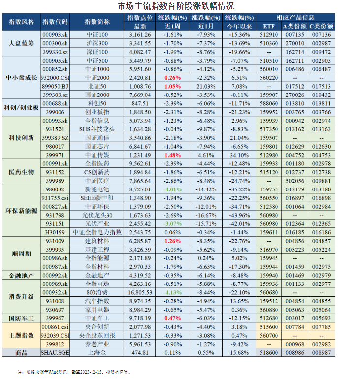 【指数市场周报】20231218