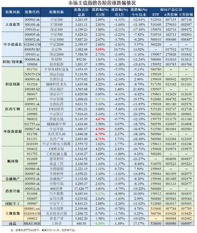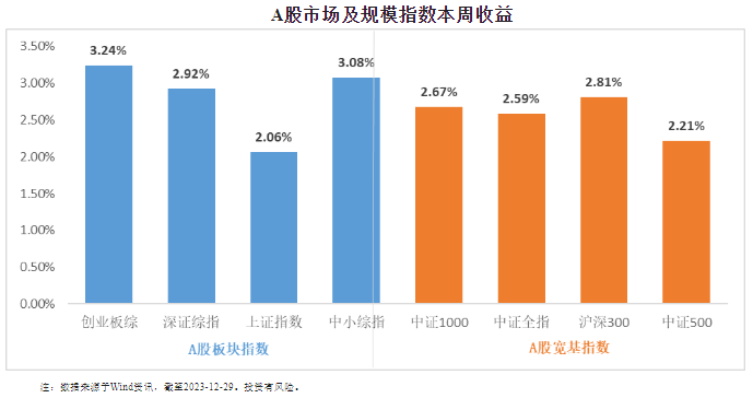 在板块表现方面,创业板上涨3.24%,深证综指上涨2.92%,上证指数上涨2.06%,中小板综上涨3.08%。规模指数方面,中证1000指数上涨2.67%,中证500指数上涨2.21%。