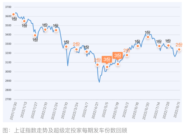 广发基金投顾团队告诉我们,自上线以来,超级定投家一共做了17次“发车”,一共发了25份定投。显然,他们的大类资产配置能力与产品设计的优势,在2022年的市场高波动中,得到了检验。