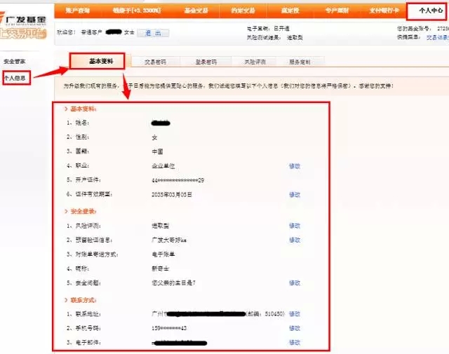 登录广发基金官网(www.gffunds.com.cn)“网上交易——个人中心——基本资料”完善所有信息。