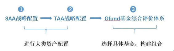 支撑以上这些操作的,是完善的投研体系和框架。我们的投资框架,从资产配置到选择具体基金,会经过这三个环节:SAA战略配置、TAA战术配置、基金综合评价。