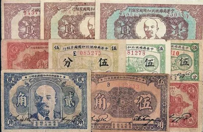 国家银行根据当时中央苏区的具体情况,发行了壹元、伍角、贰角、伍分等面值,银币券正面印有“中华苏维埃共和国国家银行”字样,还印有中华苏维埃共和国财政部长邓子恢和国家银行行长毛泽民的亲笔签字。据统计,1932年底共印制发行壹圆券375000元、贰角券103000元、壹角券129800元、伍分券48375元,总计656175元。1932年发行的货币主要用于财政支出,临时中央政府财政人民委员部支走发行的大部分货币,在国家银行总行透支总额563839元。至1934年10月长征前,国家银行发行的纸币共有壹元券、伍角券、贰角券、壹角券、伍分券5种面额、8个版别,累计发行量800万元。流通范围扩大到赣东、闽北地区。(中国金融思想政治工作研究会红色金融史编写组编著)