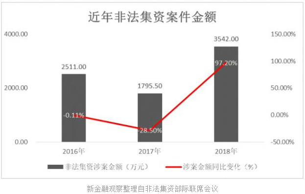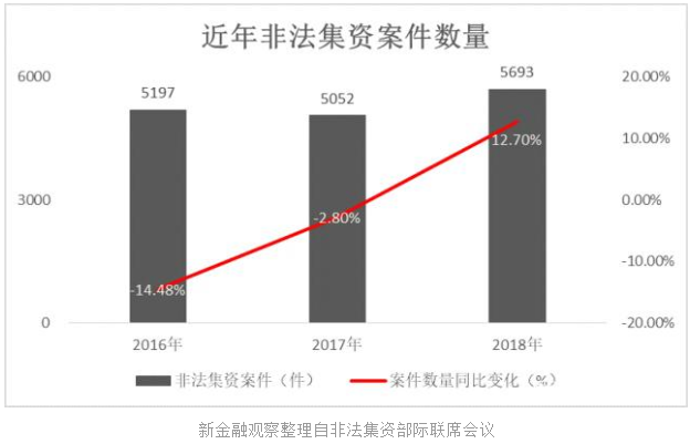 数据显示,非法集资案件在连续2年下降后在2018年快速攀升。