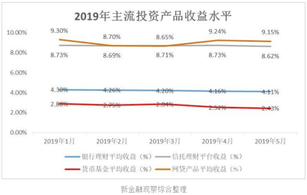 数据显示,网贷与信托产品的收益均超过8.7%,远高于银行理财和货币基金2类主流财富管理产品。