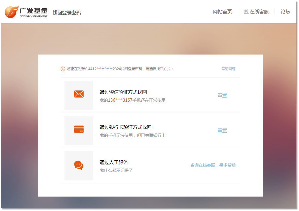 如果手机号码和银行卡均无法正常使用,或重置过程中遇到问题无法解决,可直接联系在线客服或致电客服电话95105828进行咨询。