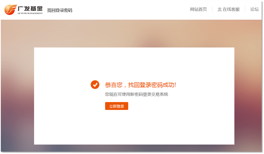 7、重置登录密码成功。点击“立即登录”可使用新密码登录网上交易系统。