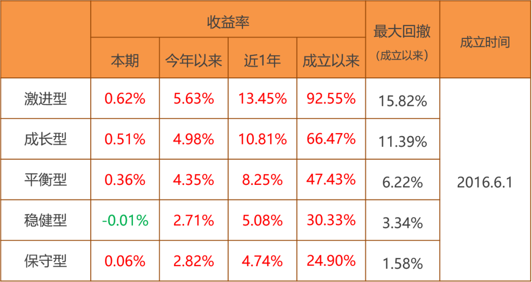 *注:当用户实际持仓与组合标准方案持仓出现偏差,系统将向用户发出持仓调整通知。若用户进行跟调,实际持仓将按组合标准方案运行,否则实际持仓按原方案运行。