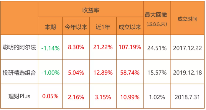 聪明的阿尔法:权益类100%,其中广发科技创新13.26%,广发多因子混合11.72%,广发鑫益混合10.83%,广发创新升级混合10.43%,广发新兴产业混合A10.07%,广发核心精选9.21%,广发价值领先9.04%,广发沪港深新起点A8.88%,广发新经济混合8.53%,广发竞争优势8.03%。维持配置不变。
