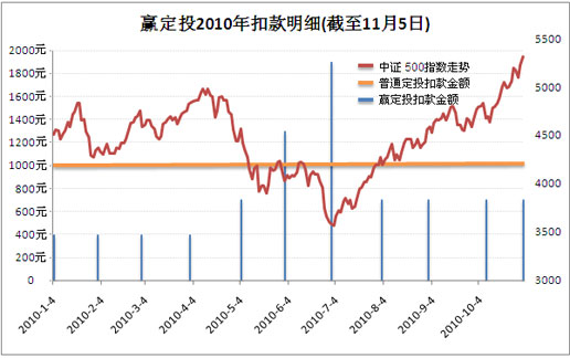 (赢定投设置:月定投,参考指数-中证500,级差-30%,均线-250日)