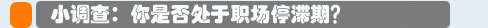 以上问题,如果你存在5条以上,便暗示你进入职场停滞期,那么现在的你就要提醒自己调整状态,莫要让这种停滞期任意的发展下去。