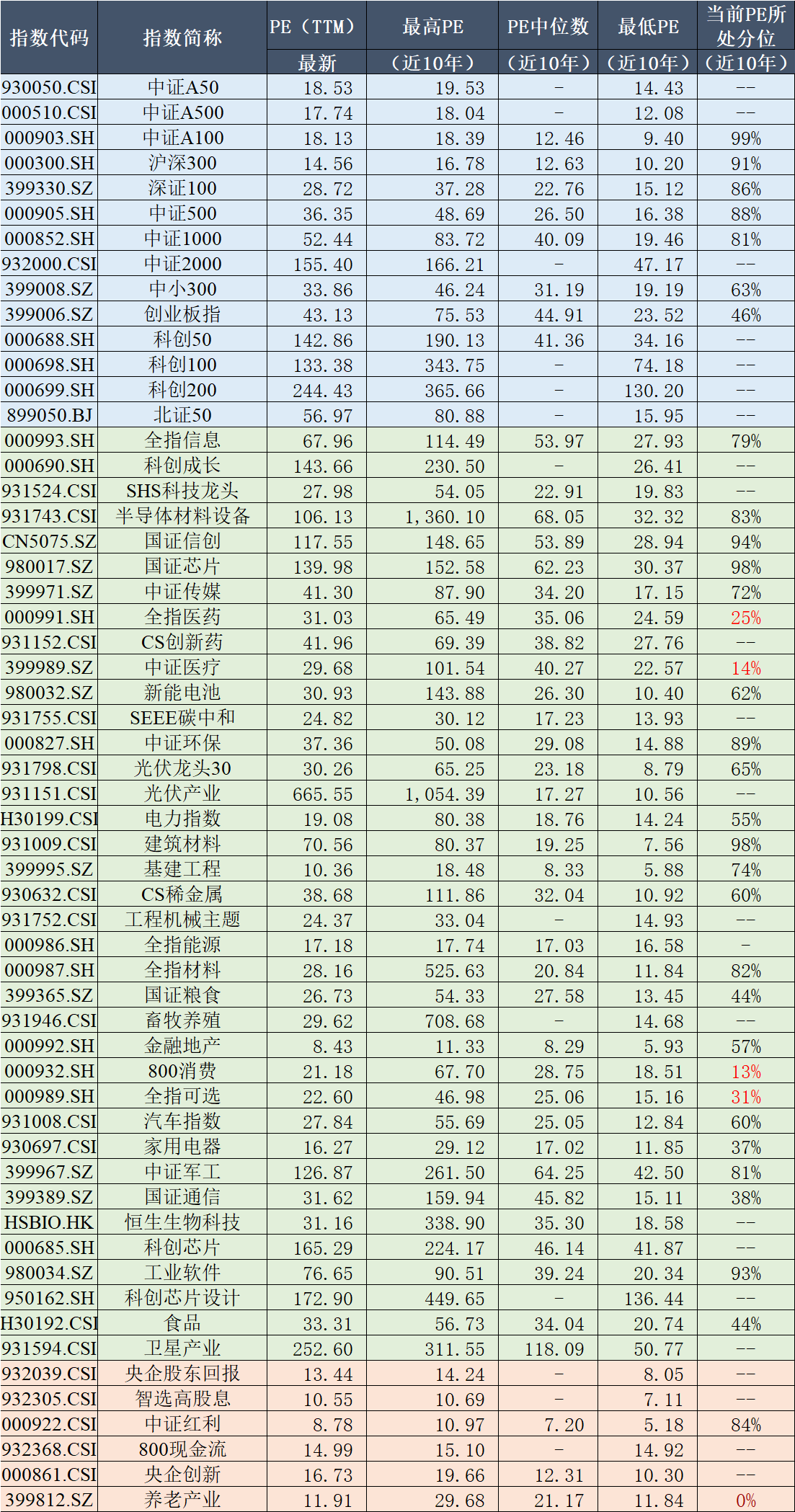 旗下产品跟踪指数近三年PE情况及当前所处位置