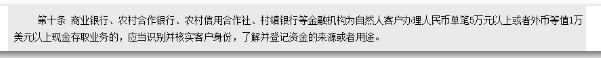 上述负责人表示,从统计上看,目前我国超过5万元人民币的现金存取业务笔数仅占全部现金存取业务的2%左右,1号令第十条的规定总体上看对客户办理现金业务影响较小。