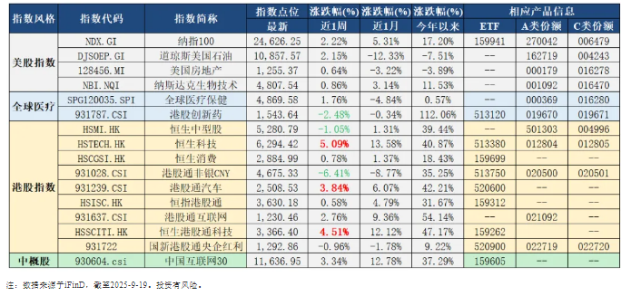 注:数据来源于iFinD,截至2025-9-19。投资有风险。