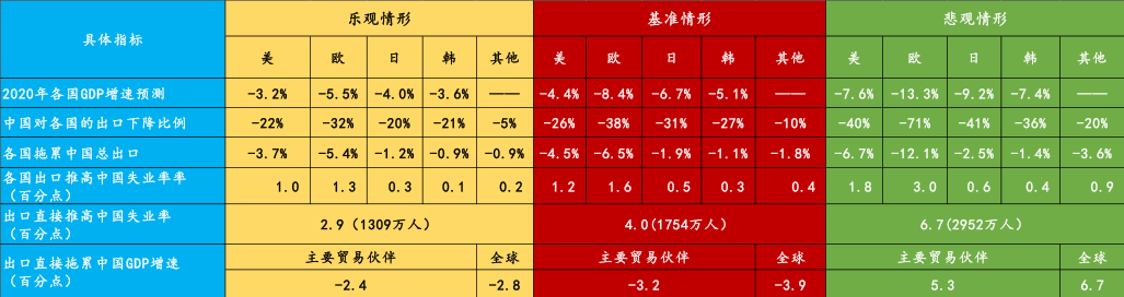 综合来看,这一情形下将拖累我国出口19.4个点,直接导致我国GDP损失3.9个百分点,并使得1700多万人口就业受到影响,对失业率影响达到4个百分点。