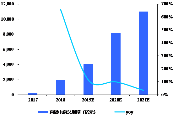▼ 直播电商崛起,2019总规模预期突破4400亿