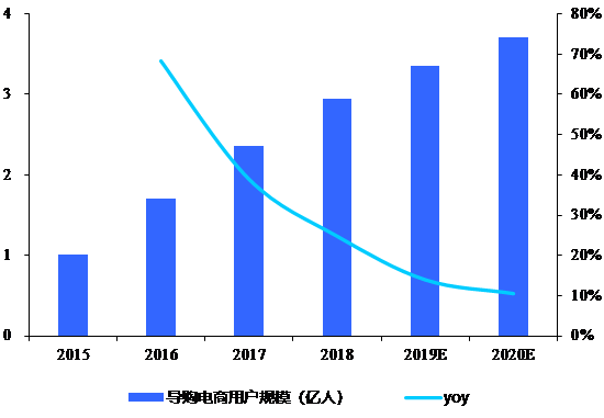 截至2018年,中国在线导购市场营收规模正式突破100亿元,且导购电商的用户渗透率仍在持续提升。艾媒咨询数据显示,2018年中国导购电商的用户人数已达到3.03亿人,2019年的用户规模预计达到3.45亿人,同比仍有双位数增长。