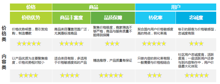内容类平台忠诚度高,价格类平台转化率好,两者各分千秋。但事实上,这两种功能目前在任何一个导购平台上都已经密不可分。