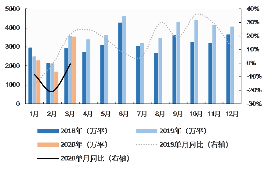以我们监测的18家房企数据来看,3月份——总销售面积为3530万平,同比仅下滑-0.6%,增速较2月大幅回升了20.3%。总销售额为4322亿元,同比下滑-12.7%,增速较2月回升了16.8%。