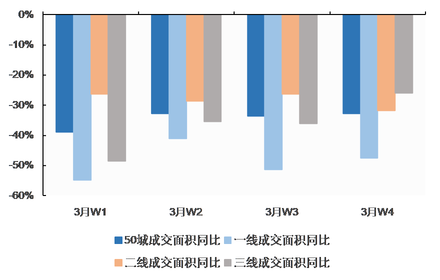 从三月整体成交数据来看,二线城市的成交量跌幅基本保持在30%以内,恢复相对较好。