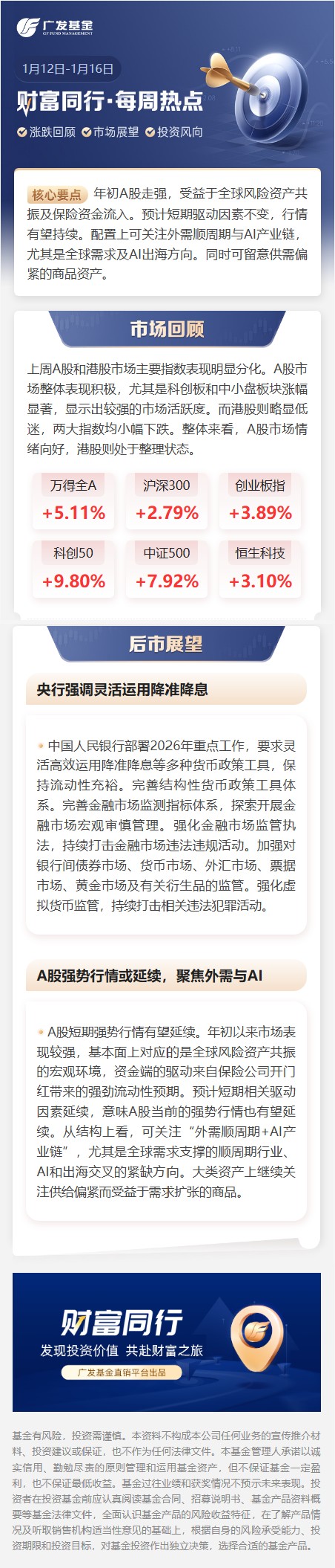 年初A股走强,受益于全球风险资产共振及保险资金流入。预计短期驱动因素不变,行情有望持续。配置上可关注外需顺周期与AI产业链,尤其是全球需求及AI出海方向。同时可留意供需偏紧的商品资产。