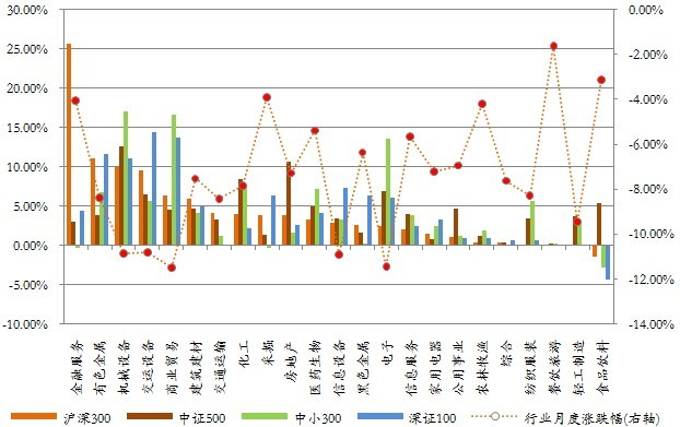 图 成份行业贡献率与月度涨跌幅