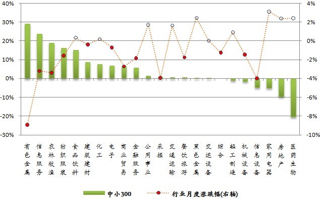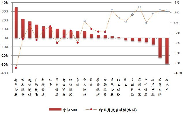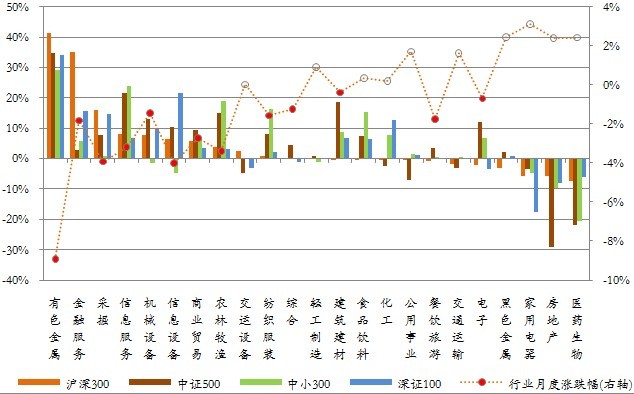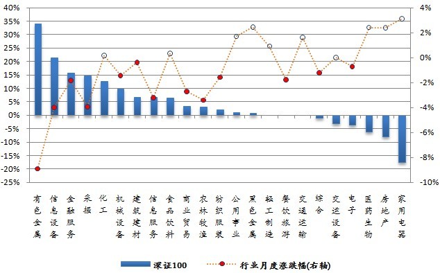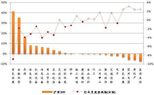 图 成份行业贡献率与月度涨跌幅