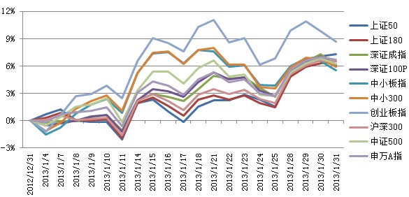 指数月报2013年1月刊(2013.1.1-1.31)来源:广发基金数量投资部
