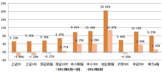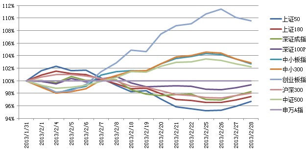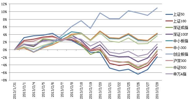 2月:创业板大幅领涨,蓝筹股表现低迷